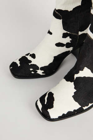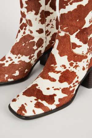 MEET PG PG is back in new prints! A client favorite we are bringing back our cowhide boot in new versions based on your obsession - Cowhide upper - Leather lining - Memory foam footbed - Heel 2.5 inches - True to size - Whole sizes only - Made in China
