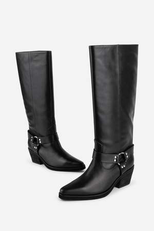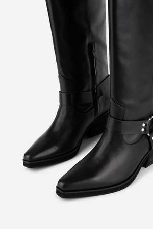 The Josephine Knee High Biker Boot is a super sleek tall biker boot inspired by 1990s biker and western boot styles. This updated version features an extended straight back shaft, giving a modern twist to a heritage classic.