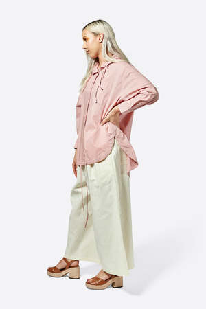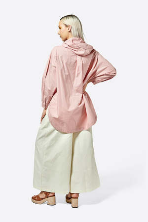 MEET BLOOMFIELD The perfect lightweight hooded shirt jacket! We love the BLOOMFIELD in these perfect washed pastels with amazing relaxed fit detailing. The oversized hood has a small brim, which elevates it perfectly! We love the high-low fit of the hemline making this perfect to toss on over anything when layering is needed.