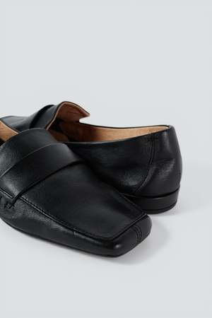 Black Pinky Loafer by Intentionally Blank. A blend of a ballet slipper and loafer, this shoe is unlined, giving it a soft, comfortable, slipper-like fit. - Leather - Made in Spain - Heel height: 0.5"
