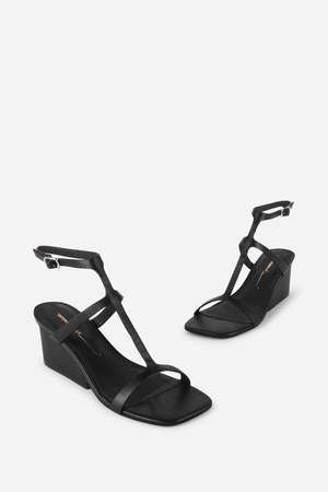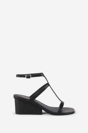 Are you a wedge? Are you a heel? You decide! SEMY is a new favorite from Intentionally Blank, and with good reason. The oversized and low-slung separated heel detail makes this shoe almost a wedge. The narrow straps of the low gladiator-inspired upper make this shoe feel fresh and new. DETAILS + FIT - Leather upper - Leather lining - Rubber outsole - Silver buckle closure; memory foam footbed - Made in China
