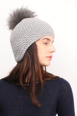 Notes Cozy light grey knitted beanie with pom-pom Composition 100% Cashmere Care Dry clean Made in Italy