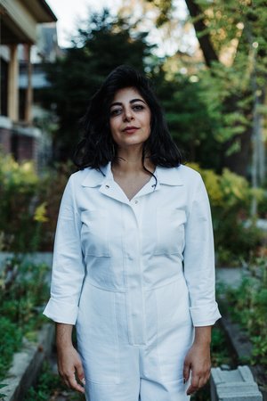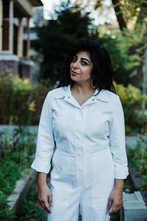 There's nothing shy about this jumpsuit! These cotton canvas coveralls are not just for the garage. They have a perfect fit that's both feminine and tomboy. An elastic at the back waist pulls in your silhouette, and the leg is straight but contours your hips and backside. They have a sexy snap front closure, a sharp collar and large pockets for anything your heart desires! Pockets include two chest pockets, front patch pockets and two back pockets. Talk about White Heat! This is Iris' first foray into the non-denim world and it looks good. Nevine is 5'5" 30 Inseam 100% Cotton Also available in Black Made in downtown Toronto. This style fits true to size. Measurements taken across while laying flat: XSMALL Chest- 17 Waist- 15 Hip- 17.5 SMALL Chest- 18 Waist- 16 Hip- 18.5 MEDIUM: Chest- 19 Waist- 17 Hip- 19.5 LARGE: Chest- 20 Waist- 18 Hip- 20.5 Everything we put together Seems to last forever He knows about a good time Gonna make him all mine -Bananarama Wash in cold water, hang to dry and never put it in the dryer! To help soften the fabric, you can soak it in fabric softener or a half cup of white vinegar.