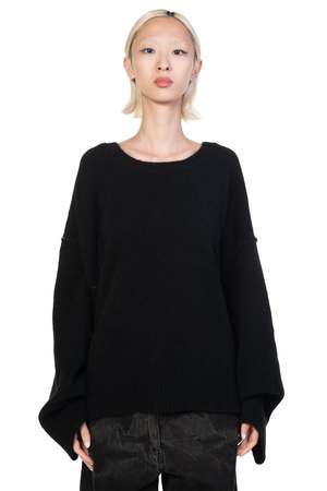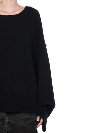 Boxy sweater in yak wool mix by Isabel Benenato. Features long sleeves, round neck, baggy fit, and a soft, lightweight fabric. Colour: Black. Composition: Yak wool mix. Made in Italy.