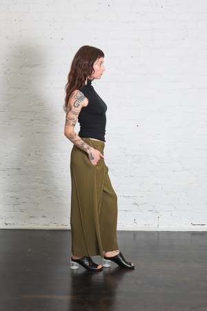 With a button-fly design, these thick pants feature an inner drawcord and pockets on both sides, creating a spacious design that sways with each step by eliminating side seams. First launched within the ISSEY MIYAKE line in 1988, this pleats line grew until it became a brand of its own with an independent Spring/Summer 1994 collectsion. Issey Miyake developed a patented technique called Finished Pleating for the foundation of this brand. Unlike most pleated products, where the fabric is first pleated and then cut and sewn, a PLEATS PLEASE garment is first cut and sewn from the original fabric and pleated after the garment is sewn together. PLEATS PLEASE reflects Issey Miyake's fundamental concept that "design is not for philosophy, but for life," and continues to evolve today. Care Do not dry clean, steam, iron, bleach, tumble dry, or use fabric softener. Machine wash cold, gentle cycle, with gentle detergent. Dry flat in the shade. Do not line dry. Roll in the direction of the pleat to store. Do not hang. Color 67 - Rock Reef Green Details 100% Polyester. Homme Pliss pieces are lightweight, easy to layer, anti-static, and never wrinkle. Size (Waist / Total length / Inseam in cm) 1: 70.0 / 87.0 / 62.0 2: 74.0 / 90.0 / 64.0 3: 78.0 / 93.0 / 66.0 Made in Japan. Fit Each Homme Pliss garment fits standard sizes 018. Select your size based on length: Homme Pliss garments have a unique size scale that is based on garment lengthSize 1 is the shortest length and Size 5 is the longest length. Due to the garment pleating technique, which provides great stretch and comfort, there is only a minor change in garment width between sizes, and you should select your size based on length only. On average, the difference in length between sizes is approximately 12" in length, with slight variations in armhole openings. Customers of various heights may choose longer or shorter lengths based on their preferred look. Season FW25.