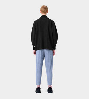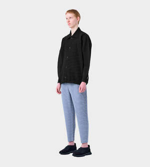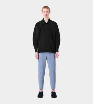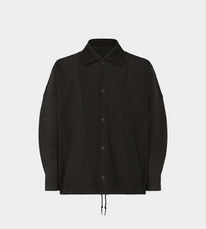 Basic fully pleated long sleeve polo jacket with full button up and pleated collar. Vendor Colour: 15 Black Vendor Style: HP48JC106 Fabrication: 100% Polyester. Made in Japan. Machine wash cold. Gentle cycle. Do not tumble dry. Flat dry in the shade. Do not iron. Do not steam. Do not dry clean. Wash in a net bag. Wash with like colours. Do not hang.