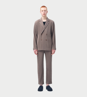 A double-breasted pleated jacket from Issey Miyake.