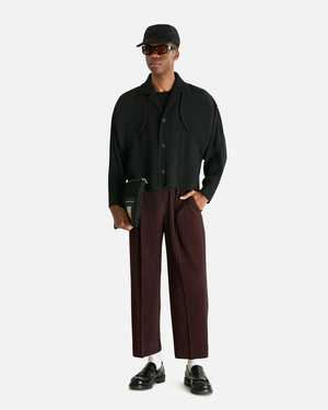 This jacket is crafted from a medium-weight pleated polyester fabric and features a spread collar, button front closure, a substantial overlapping yoke that extends from the back to the shoulders, and side seam pockets. FIT - Relaxed fit, boxy - Model is 5'10" and wears size 2 FEATURES - Spread collar - Button front closure - Side seam pockets - Detachable overlapping yoke that folds over shoulders - Adjustable buttoned cuffs - Straight hem COMPOSITION - 100% polyester - Made in Philippines