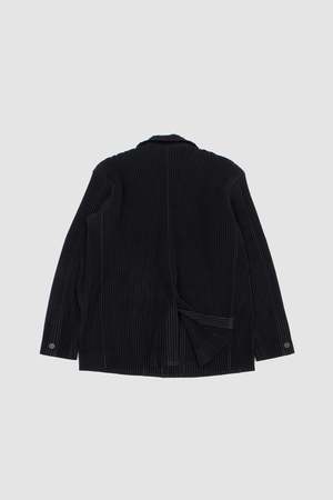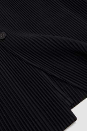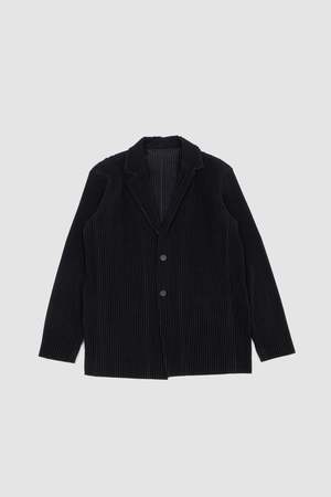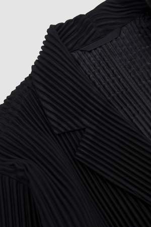 This black pleated jacket has a straight shape and tailored shoulders. It features an innovative armpit design that achieves a softer fit. It is partially lined, has a two button closure and side pockets. BASICS is the fundamental series of the brand, offering a range of core styles in neutral colours for everyday living. The polyester fabric of this series is now made from recycled materials. Please note that the colours of this series may differ from BASICS made before 2023.
