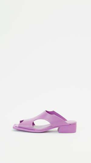 Issey Miyake x United Nude Fin Shoe in Purple The Fin Shoe features an open, cut-out design, low heel and open-toe silhouette. Developed in collaboration with United Nude, this collectsion was inspired by manta rays and the colors of the ocean. Materials: Cowhide upper, Goat leather lining, Natural rubber sole Made in Japan About Issey Miyake Japanese design icon Issey Miyake has been a pioneer in the fashion industry since the launch of his namesake brand in 1971. Known for his groundbreaking pleating technique, Miyake blends traditional Japanese techniques with modern experimental technologies to continue to push the boundaries of the fashion avant-garde. The label is dedicated to innovation in design, from philosophy and inspiration to technical construction and engineering. Expect easy, sculptural silhouettes, Japanese modernism, bold patterns and the brands signature pleats.