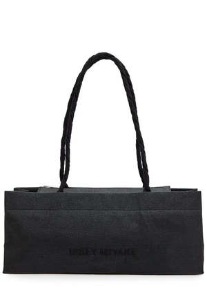 Emulating a simple paper bag, Issey Miyake's take on an east-west handbag. Made in Japan. Details: 100% Paper. Handle: 72% Polyester / 28% Linen.