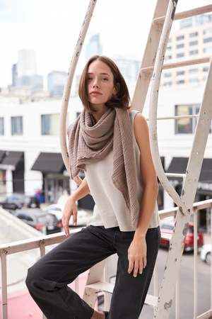 -Naturally frayed edges - Crinkled gauze - Can be worn multiple ways 100% Cotton Made in California. One size Width: 50" Length: 50" Care Instructions: Hand wash or gentle cycle cold with like colors. We recommend tumble drying on low heat to achieve a more crinkled look as they will stretch out with wear. *Our garments are uniquely dyed so no two are exactly alike. Colors and measurements of our garment dyed pieces may slightly vary. Random distressed spots are unique part of our hand washed (oil wash) pieces.