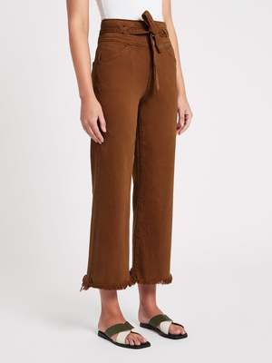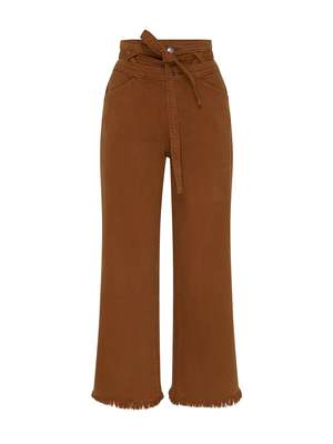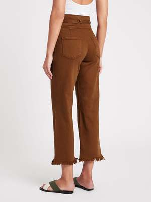 Take a nod to the 70's with the J Brand Sukey Crop Jean in Eclair. Constructed form a cotton, elastane blend these super high waisted jeans feature a three button fly and coordinating tie belt, a super flattering wide leg that has a cropped finish and is completed with easy going frayed detailing. Team with the Paige Denim Ryo Tee in Washed Onyx for easy weekend style. FABRIC OR COMPOSITION The J Brand Sukey Crop Jean in Eclair are made from 98% Cotton, 2% Elastane SIZE AND FIT The J Brand Sukey Crop Jean in Eclair fit true to size Rise: 30cm / 11.8inch Outseam: 90cm / 35.4inch Measurements taken from a Size 26