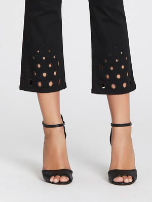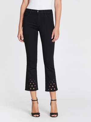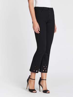 The J Brand Selena Midrise Crop boot Jean in Black Eyelet are the perfect pair to spruce up your denim collectsion. Constructed in a soft black cotton blend this jeans are a mid rise boot cut jean and feature black hardware, front and back pockets and are a crop finish with ultra cool black eyelet details around the hem. ---- FABRIC OR COMPOSITION 88% Cotton 8% Polyester 4% Elastane SIZE AND FIT The J BRAND SELENA MID RISE CROP BOOT JEAN in BLACK EYELET fits true to size Measurements taken from a size 26 Rise: 9in / 22.9cm Outseam: 35.5in / 90.2cm Model is wearing a Size 26 Sarah is 178cm / 59 Bust 83cm / 32 1/4 in /// Waist 66cm / 26 in /// Hips 89.5cm / 25 in