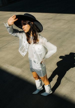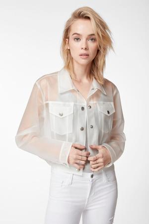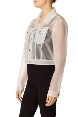 Life in plasticit's fantastic! This is the statement jacket every fashion insider is clamoring for: our oversized Cyra trucker jacket, cropped and in a clear polyurethane material. Double-breasted front pockets with patch pocket construction. Clear cloud colour 100% polyester