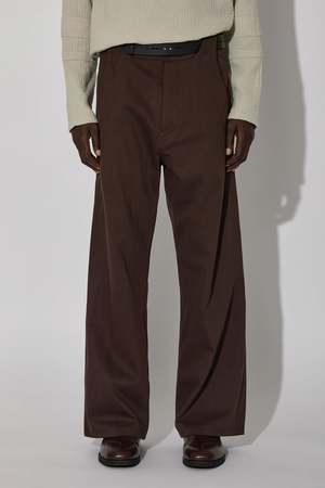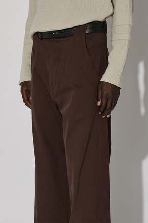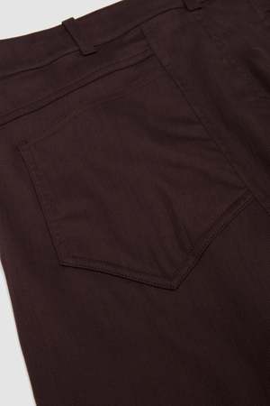 Cut from textured denim, the Thonet Trousers feature applied back pockets that taper into darts at their inner edge, directing shape through the rear panel. At the front, grown-on belt loops emerge from the panel, sweeping over the waistband and finishing cleanly at the top edge. Precision construction realised in Italy.