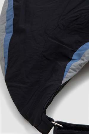 The Minno jacket draws inspiration from archery tracksuits and is rendered in nylon blends. The sharp lines wrap around the body in a seasonal iteration of a _J.L-A.L_ staple.