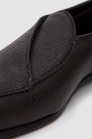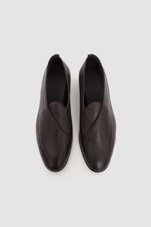 The Shin Loafer is a new footwear offering from J.L - A.L for SS26. Crafted from textured calf leather in a low-profile silhouette featuring a one-piece wrap-around detail and a leather sole.