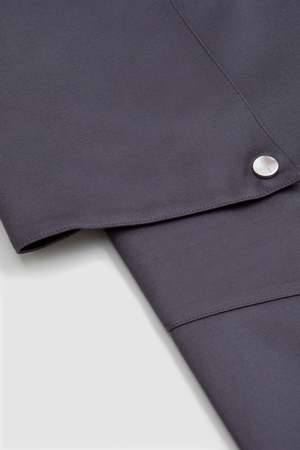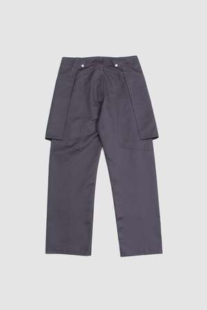 The tiller trouser features a double pocket construction, offering a distinct silhouette that moves with the wearer. It is available in a 3-layer nylon and a double woven blend.