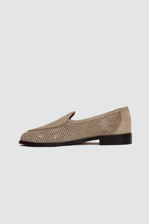 The Jacques perforated suede latte leather loafers epitomize refined elegance and timeless style. Crafted from high-quality polished calf leather, they have a sleek and sophisticated appearance, making them a versatile addition to any wardrobe.