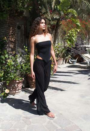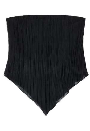 One Size: XS-XL Color: Black Ripple Sheer Handkerchief Style Top V-cut Silhouette Adjustable Tie in the Back Seamless Stitch 100% Polyester