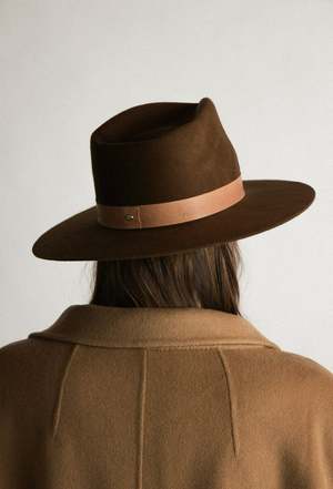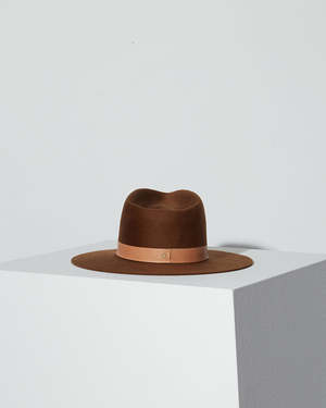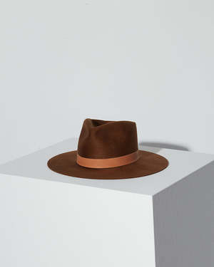 Whiskey Stiffened Wool - 1" Clay Leather Band - Brim: 3.25" - Crown: 4" Janessa Leone only uses wool that is sustainable and cruelty-free. Their 100% virgin wool is taken from a lambs first shearing, resulting in the softest, finest wool available. They clean, scour and dye their wool in their employee-owned factory in the United States. From shearing the wool, to hand polishing a finished body, their hats pass through 50 skilled artisans hands. 54 cm - Small 55 cm - Medium 57.5 cm - Large 60 cm - Extra Large Made in the USA.