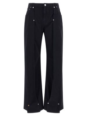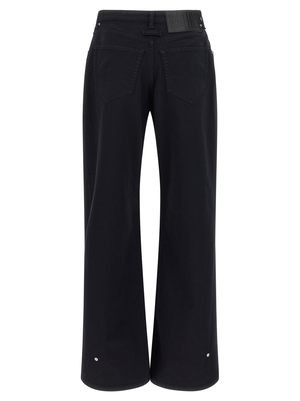 'The Snap-Button Denim' overdyed cotton denim jeans with zip and button closure, wide leg with front cut-out detail and metal rivets, pockets, and back logo2 tag. Composition: 100% cotton.
