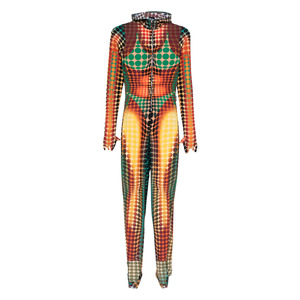 Women > Clothing > Jumpsuits Orange and multicolour dotted-pattern jumpsuit with zip fastening and long sleeves.