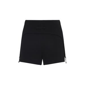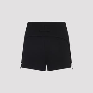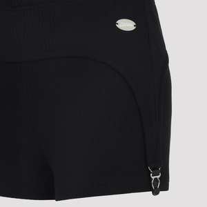 Women > Clothing > Pants & Shorts > Shorts Jean Paul Gaultier Lingerie Garter Black Cotton Shorts. Crafted from black ribbed cotton, turn-down waistband with lingerie garters, silver-toned branded metal plaque on the front side, horizontal belt loop detail at the back, slim fit.