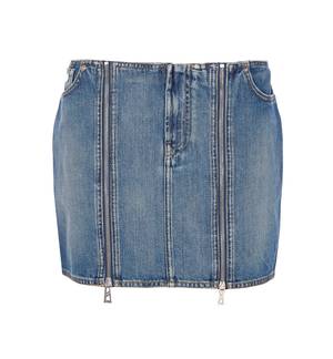 Jean Paul Gaultier vintage blue denim front zipped skirt with pockets. Mini model. Composition: 100% Cotton; 65% Polyester, 35% Cotton.
