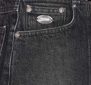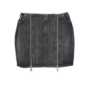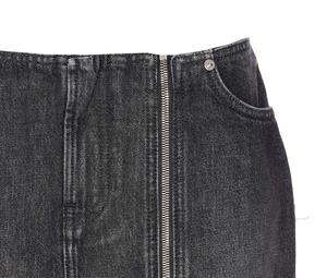 Vintage black denim mini skirt by Jean Paul Gaultier featuring a front zip closure and pockets. Composition: 100% Cotton; 65% Polyester, 35% Cotton.