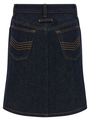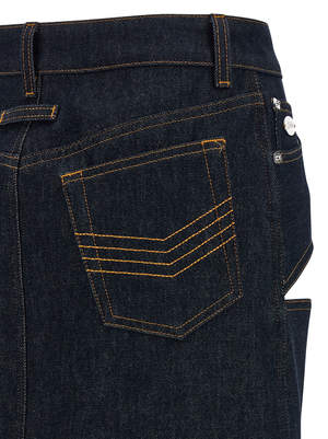 Women > Clothing > Skirts "Denim Mini Skirt With Cuts And Turn Up" cotton denim skirt with contrast stitching, front cut-out detail, integrated culottes, zip and button closure, five pockets, metal plaque with engraved logo2, and a high waist. Composition: 100% cotton.