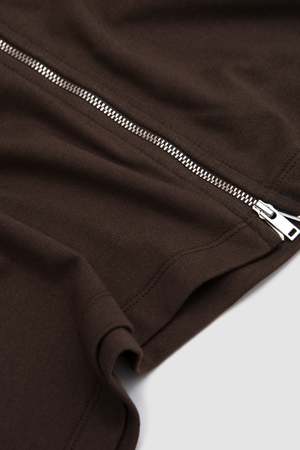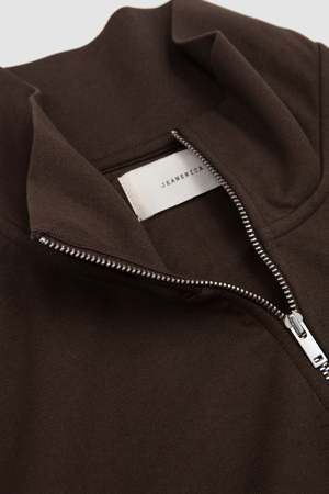 Bosie is a sophisticated zipped jersey cardigan with a distinctive high collar design. Crafted from heavyweight 230 gsm cotton jersey, it offers substantial structure while maintaining soft comfort.