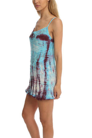 Feelin' wild? This is your go to in warm weather apparel. Perfectly suited in Tie-Dye, this romper by Jen's Pirate Booty features a crochet design and lightweight fabric for easy all day wear. - Color: Deep Red/Hot Turquoise - 100% Cotton - Style #: DSP16-61 - Made in Mexico - Hand Wash Cold * Model is 5'9" wearing size S * Please note each piece can vary slightly in color and fit as they are all handmade. Productcode JPBS6-3 Designer Jen's Pirate Booty