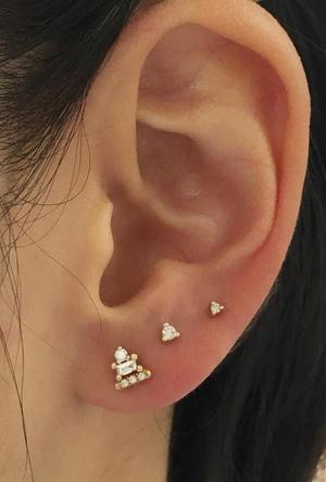 Jennie Kwon Designs | Diamond Dot Stud Our Dot Studs are the not so basic basic you've been searching for all these years. Layer them up, two or three in a row, to create a colorful constellation on your ear, or wear alone to catch a sparkle every now and then. - 2 mm prong set diamond - 14k yellow gold - Earring backs are 10k - Sold as a single earring All pieces are delicate in nature and should be treated accordingly. Pieces with stones should be protected from impact or bending, as stones are meticulously and precisely set, and may pop out of their settings if shifted in any way. For best results, have a professional jeweler clean your piece to ensure longevity. Please contact us regarding any repairs due to normal wear and tear and we will be happy to connect you with the jewelry vendor.