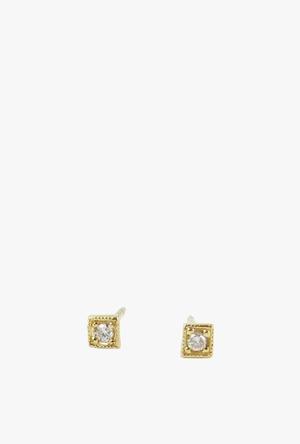 Basic studs that don't feel basic. Our Diamond Mini Square Studs may be small in scale but feel elevated because of the level of detail that goes into making them. All hand milgrained, we love the subtle texture this adds to your ear party. - Two 1.2 mm white diamonds - 3 mm square - Earring backs are 10K - Sold as a pair