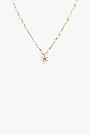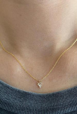 This dainty piece is small in scale, but brilliant in catching the eye. We love the clean facets of baguette diamonds and the sparkle this tiny piece will add that pop to your every day. Details: - 3 x 1.5 mm baguette diamond - Three 1.2 mm diamonds - 16" cable chain