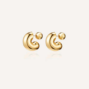 A tubular, chubby hoop with rounded ends and a custom JB ball backing. Finished in high-polish gold. 14k gold-dipped brass finish: high polish ball backing product measurements: earring length: 20.4mm / 0.8" earring width: 18.6mm / 0.73" earring depth: 8mm / 0.31" weight: 8.8g / 0.31oz