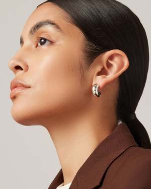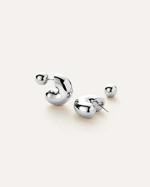 A tubular, chubby hoop with rounded ends and a custom JB ball backing. Finished in high-polish silver. silver dipped brass finish: high polish ball backing product measurements: earring length: 20.4mm / 0.8" earring width: 18.6mm / 0.73" earring depth: 8mm / 0.31" weight: 8.8g / 0.31oz