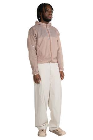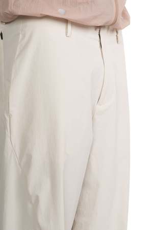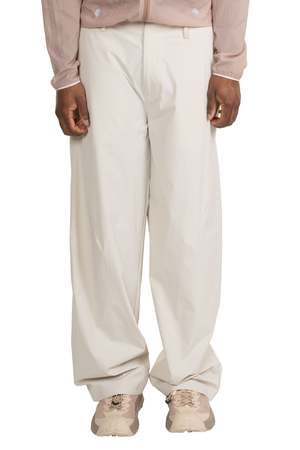 JEONGLI reinvents workwear for urban life through functional innovation. The Seoul-based brand merges technical precision (taped seams, multi-directional zippers) with nature-inspired design, creating durable garments that transition seamlessly from work to active lifestyles. Founder Jeong Li's instant success with his urban-nature aesthetic proves the demand for this new vision of practical sophistication as seen with the Cicada Pants Light Grey. Wide fit pants made of elastic water-repellent material. Bonded back hem cut open zipper. Side hidden pocket. Turnback Bonded Hem. YKK hem zipper. Colour: Light Grey. Composition: 86% Nylon 14% Span. Made in Korea.