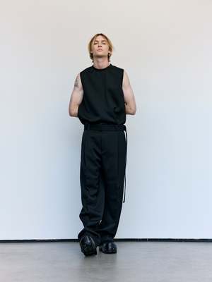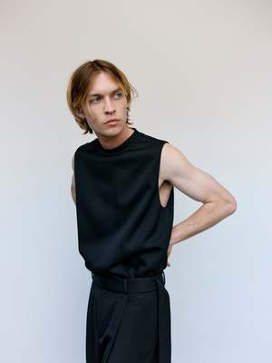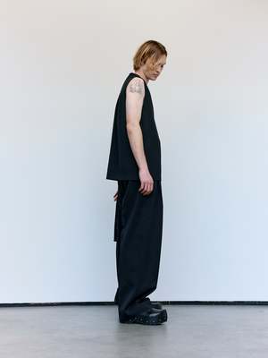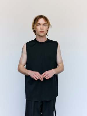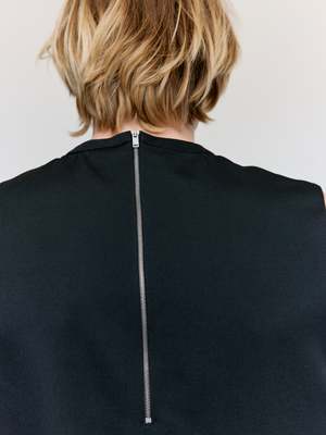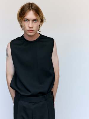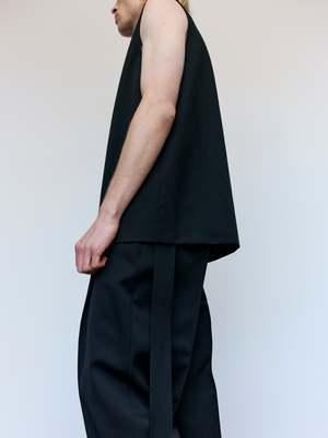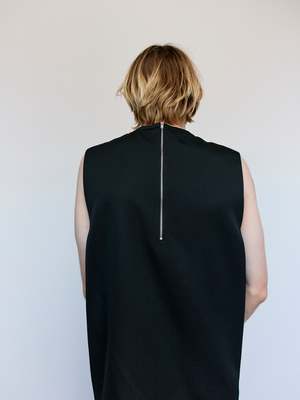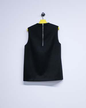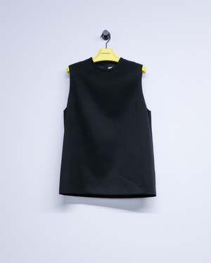 Black Grain de Poudre Wool Tank Top with a regular fit. Detailed with a round neck binding including a zip in the back. Features a straight hem. Fully lined. Primary Fabric: 100% Grain de Poudre Wool - Lining: 100% Viscose-Rayon Model wears a size 48.