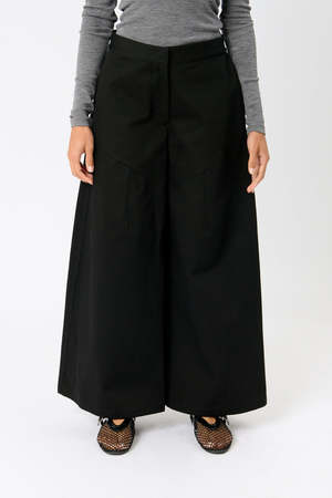 These cotton wide leg pants from Jil Sander feature detailed stitching and a concealed button. - 100% Cotton - Made in Italy - Color: Black - Fits true to size - Model wearing size 34 FR
