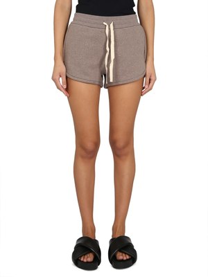 Elastic waistband with exterior drawstring. Primary fabric: 100% cotton. Pocket lining: 100% cotton.