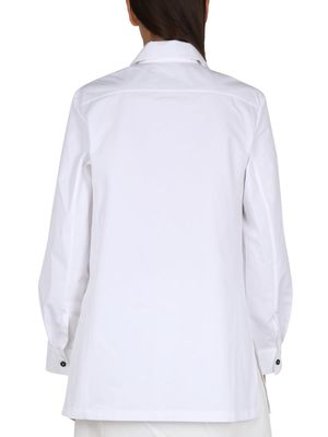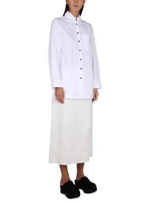 Pointed collar. Front button closure. Primary fabric: 100% cotton.