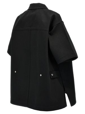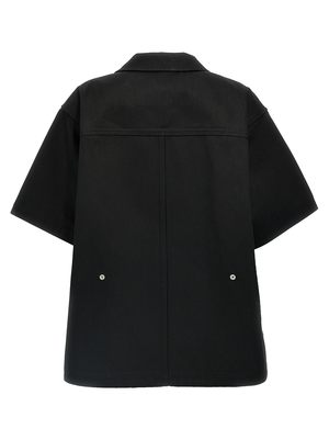 Boxy textured cotton denim shirt with short sleeves, dropped shoulders, zip closure, pockets, side slits, adjustable martingale with back snap closure. Composition: 100% cotton.