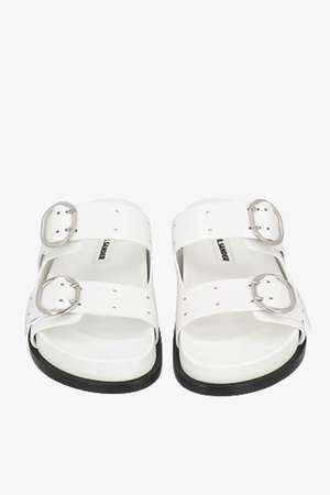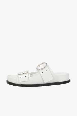 With Jil Sander's Flat Buckle Sandals, you can bring new life to your summer looks. These eye-catching leather sandals are expertly made from sheepskin and have two adjustable buckle-fastened straps to keep your feet in place. Details & Care - 100% leather - Made in Italy - White leather - Buckle details - Footbed Fit - True to size - Take your true size - EU sizing