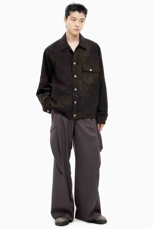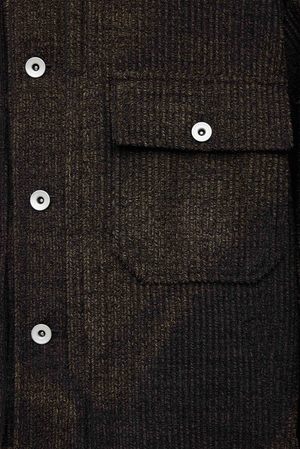 JiyongKims signature sun-faded effect is developed over months of natural exposure to sunlight, rain, and wind, creating one-of-a-kind patterns without chemical dyes or water waste. The Sun Bleached Trucker Jacket is defined by structural panel construction and a cotton velvet-like texture. It features practical side pockets, front flap pockets, a cinch-back detail at the rear for shaping the silhouette, and a left chest pocket. YKK canton buttons are used at the front and cuffs. This item has been sun-bleached and carries a unique imprint of nature and time. Each piece features individual irregularities for a one-of-a-kind finish. Relaxed fit. Colour: Brown. Composition: 100% Wool. Lining: 100% Recycled Polyester. Made in Korea.