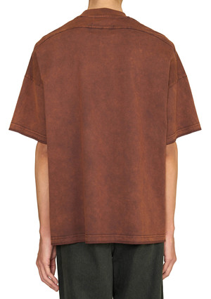 Joe chia is built immensely around exceptional construction, fine fabrications and precise tailoring, entwining classicism with contemporary references that stand the test of time, challenging and reimagining duality with innovation and a sense of audacity as you can see in the Turba Stone Wash T-shirt Sahara. Short sleeve semi oversized t-shirt. Overlock detailing on sleeve and hem. Mock collar. Medium cotton, breathable and comfortable. Cotton: Sahara. Composition: Cotton