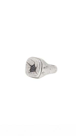 John Varvatos Signet Ring The Signet Ring features 8 embedded pave black diamonds in the center and a heavily distressed motif. Material: Sterling Silver and .08ct Black Diamonds Measurements: 8" Length Handcrafted in Turkey About John Varvatos: John Varvatos is a brand that brilliantly "unites old-world craftsmanship and refined tailoring with modern innovations in textiles and a rock 'n' roll sensibility."