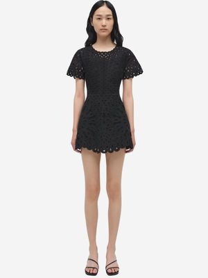 The Emrys Mini Dress by Jonathan Simkhai features a short-sleeve fitted bodice with a flared mini skirt in a beautiful cutout appliqu fabric. Product Details - Designer ID: 126-1226-BA - Color: Black - Composition: Shell: 62% Cotton, 38% Polyamide; Lining: 100% Polyester, 100% Polyamide - Imported